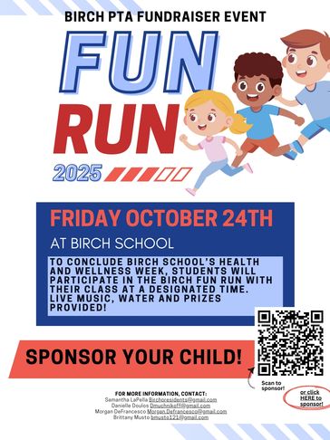 Don't forget to sponsor your child for the upcoming Fun Run. Share this with family and friends. The event is during the school day on Friday, October 24th.
